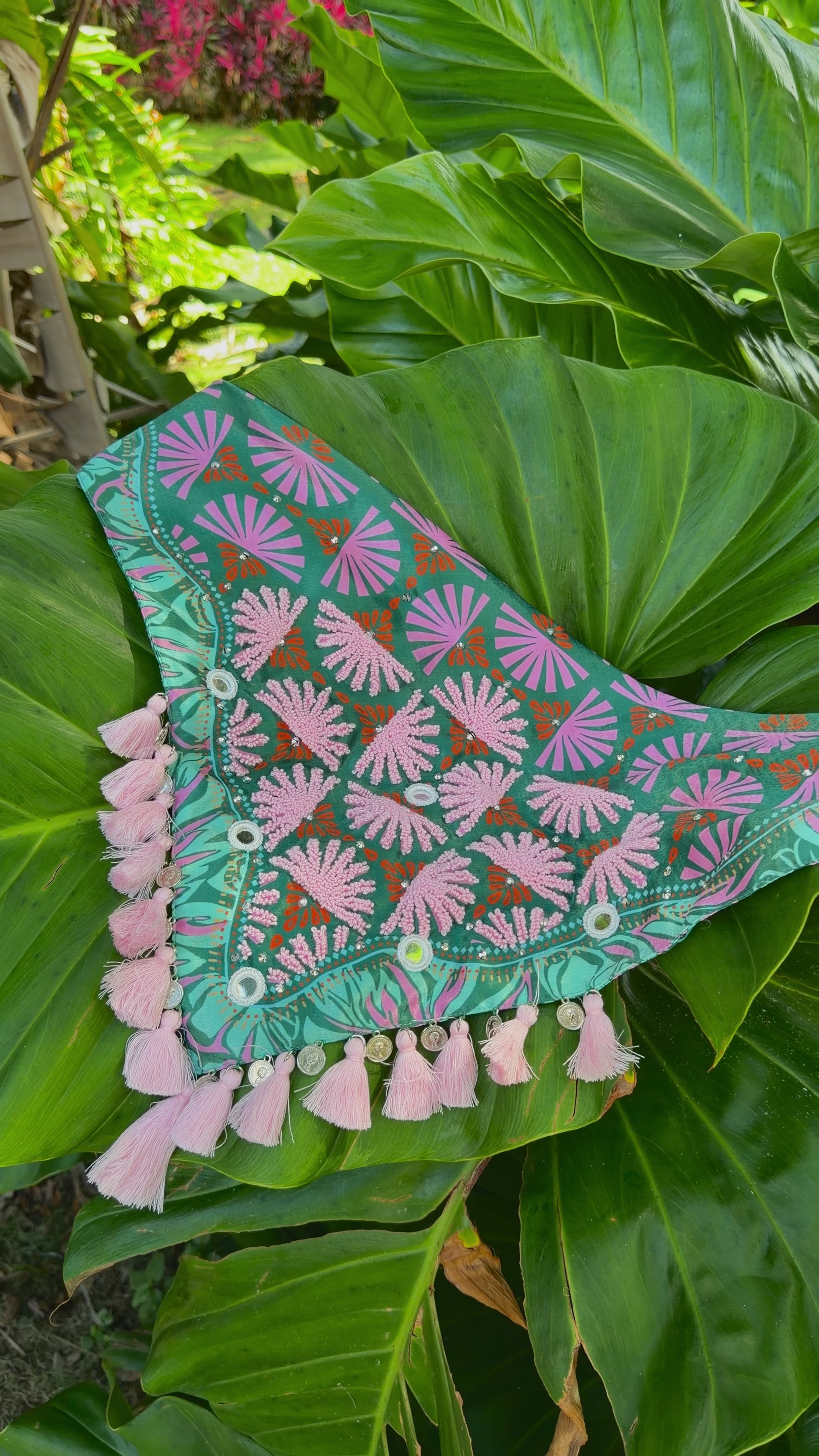 Esta pañoleta bordada artesanalmente está inspirada en la magia del bosque El Yunque, su verdor eterno y su energía sanadora. Una pieza con alma, creada para acompañarte en cada momento.